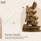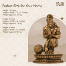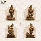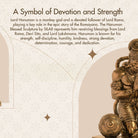 Lord Hanuman is a monkey god and a devoted follower of Lord Rama, playing a key role in the epic story of the Ramayana. The Hanuman Blessed Sculpture by SILAII represents him receiving blessings from Lord Rama, Devi Sita, and Lord Lakshmana. Hanuman is known for his strength, self-discipline, humility, kindness, strong devotion, determination, courage, and dedication.