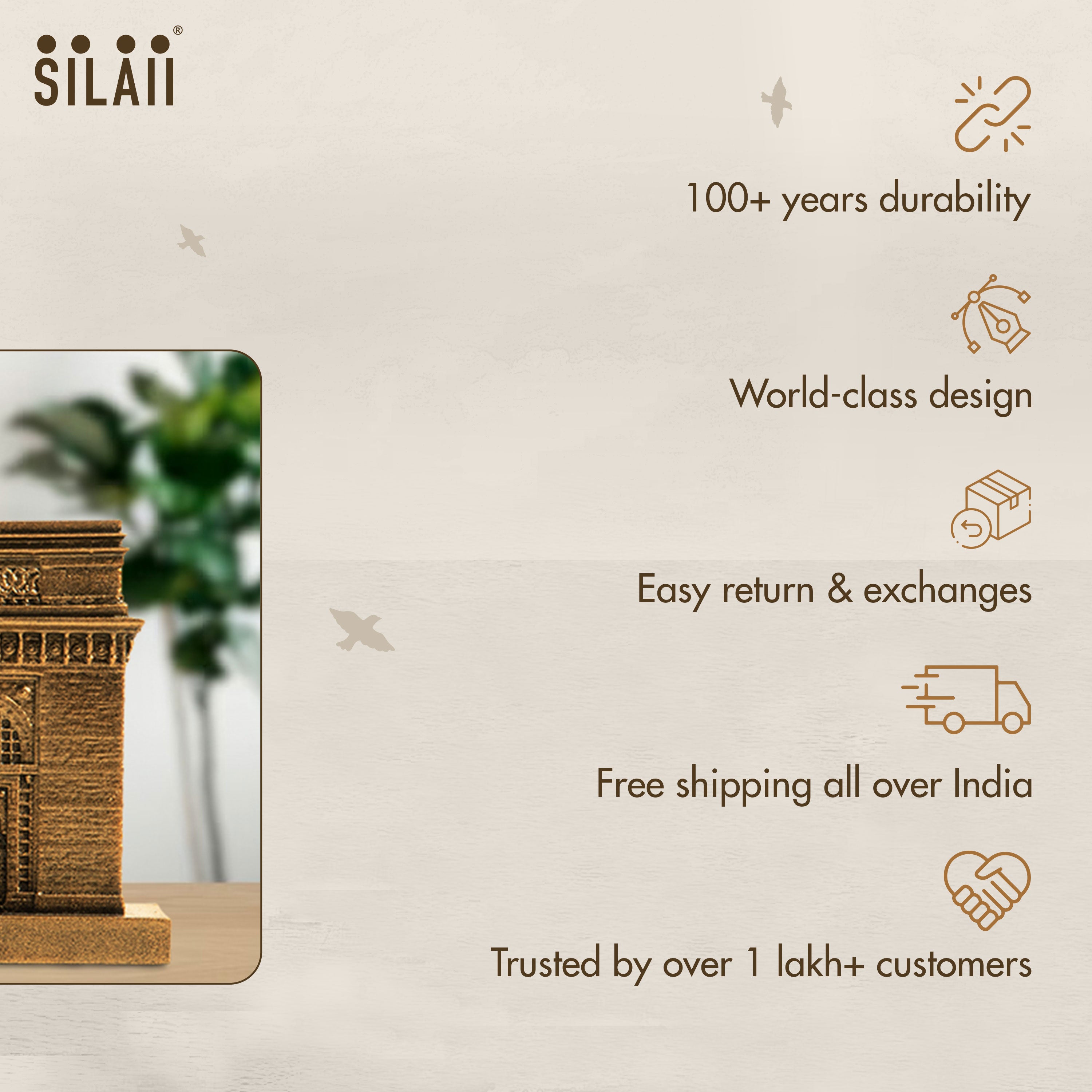 As you explore the Gateway of India, you'll witness the craftsmanship of SILAII's master sculptors. Admire the detailed engravings and designs on its surface, showing our sculptor’s commitment to top-notch quality, reflecting the iconic landmark's grandeur in each SILAII creation.