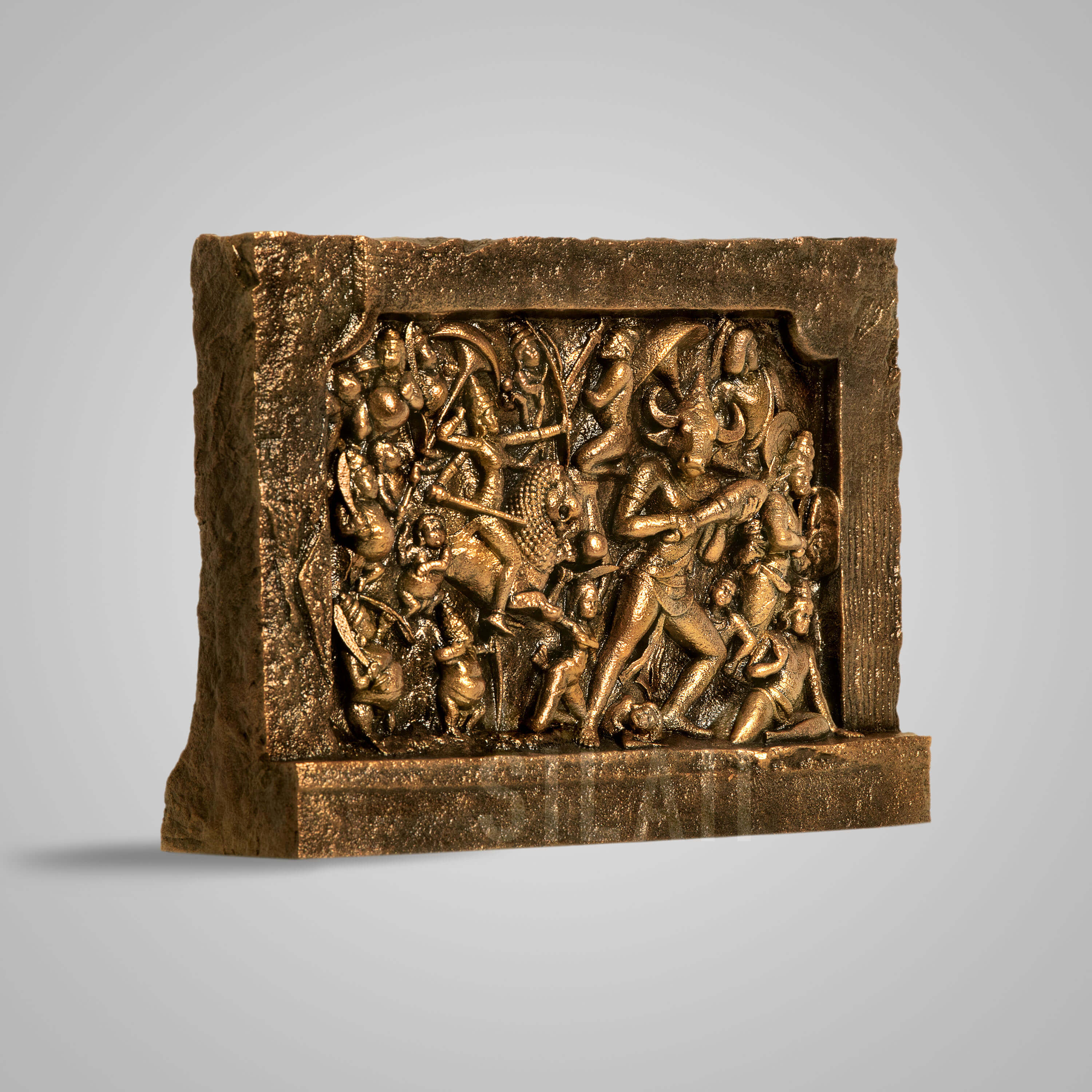Our skilled sculptors precisely replicate the 7th-century rock-cut architectural masterpiece, capturing the dramatic climax of this mythological encounter. From Durga's fierce stance and her divine wrath as she wields the trishula, to the subtle expressions of Mahishasura.