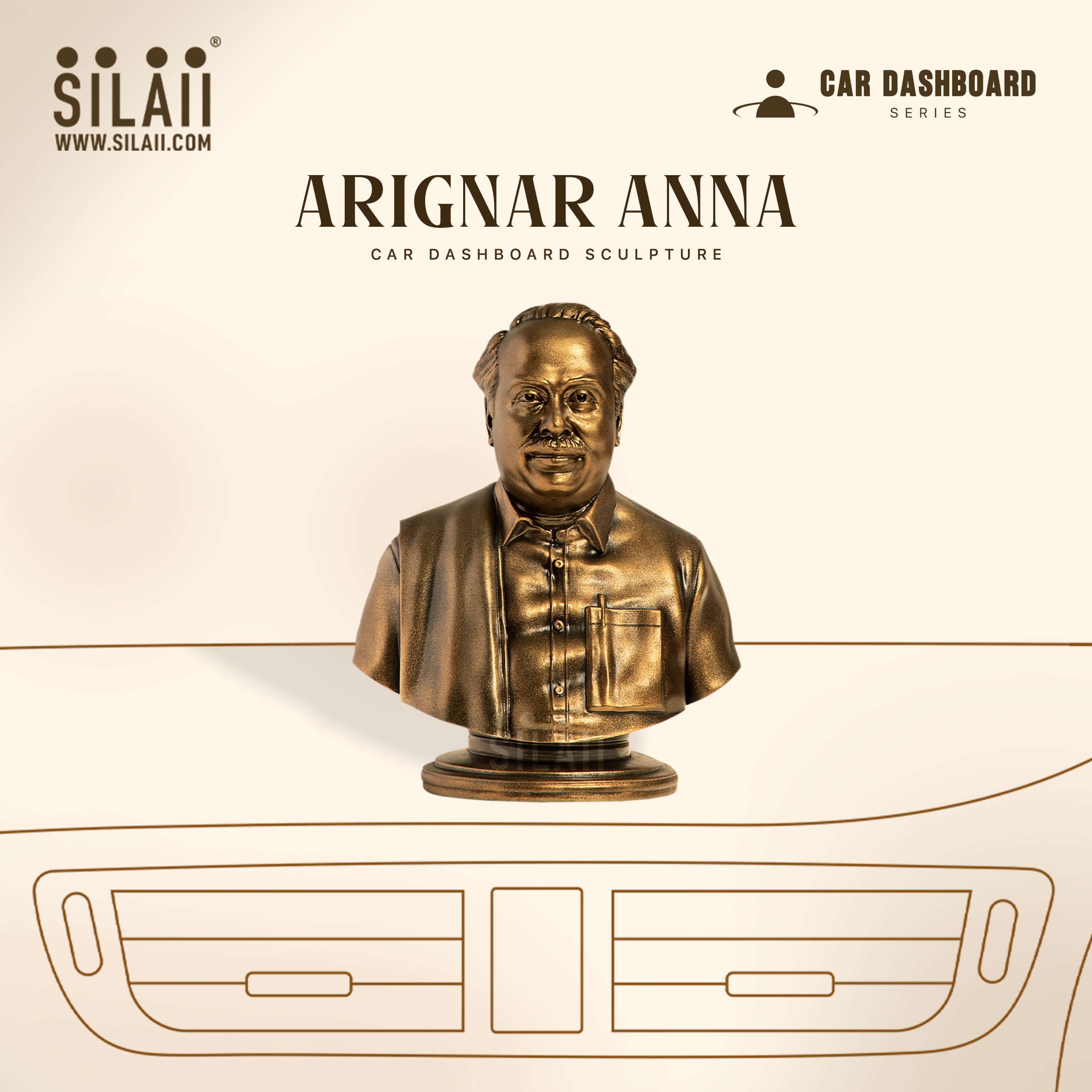 SILAII presents the Perarignar Anna Car Dashboard Sculpture, a tribute to the stalwart of Dravidian politics and founder of the Dravida Munnetra Kazhagam. A powerful writer and orator, he championed social equality and played a key role in shaping the progress of Tamil Nadu. Keep his inspiring legacy with you on every drive.
