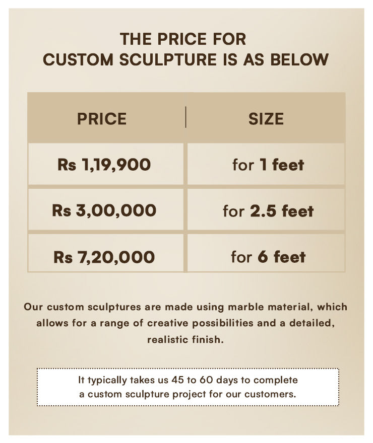 Custom sculptures start at ₹1,19,900 for a 1-feet.