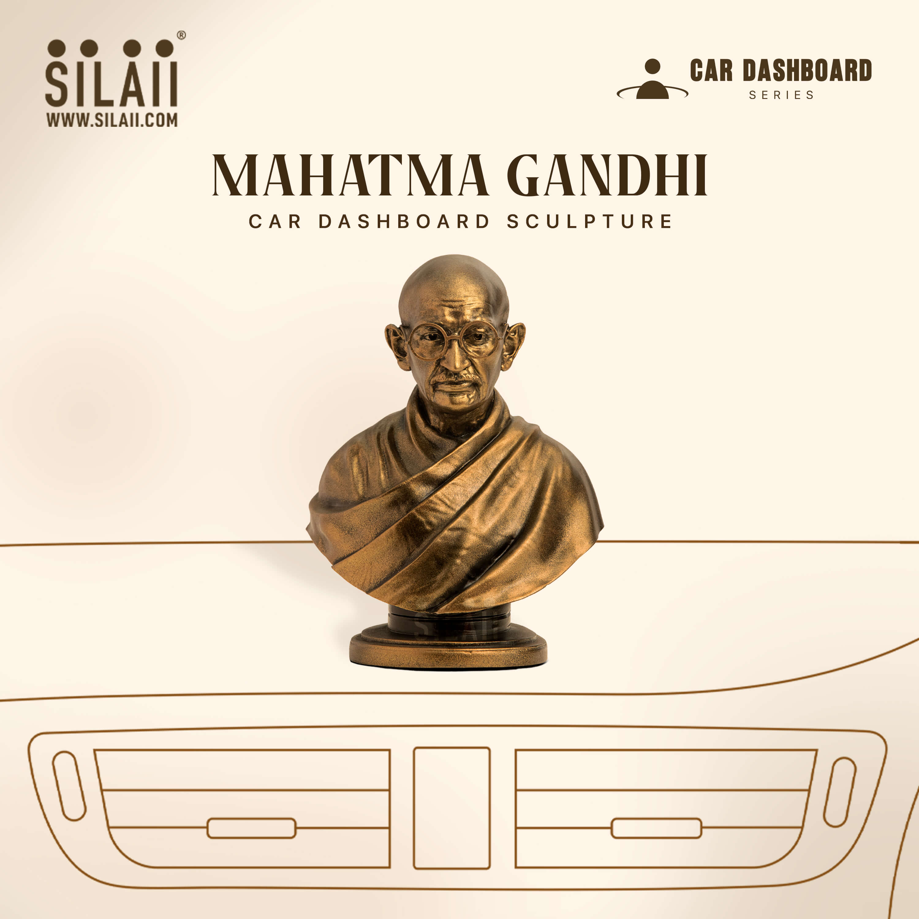 SILAII presents the Mahatma Gandhi Car Dashboard Sculpture, a tribute to the global symbol of non-violence, equality, and civil rights. His teachings of truth and ahimsa continue to guide generations toward compassion and justice. Keep his timeless legacy with you on every drive.