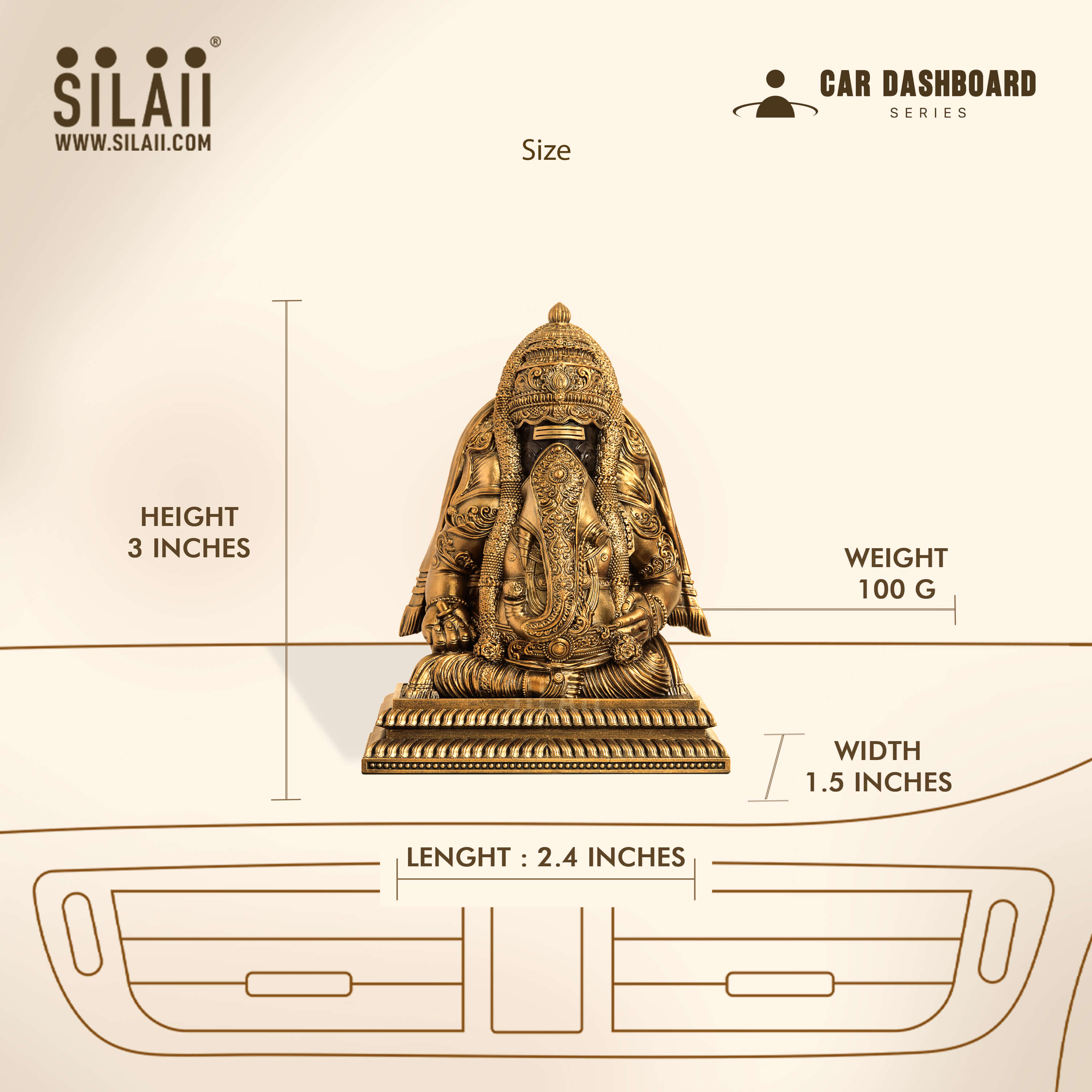 Pillayarpatti Karpaga Vinayagar Car Dashboard Sculpture