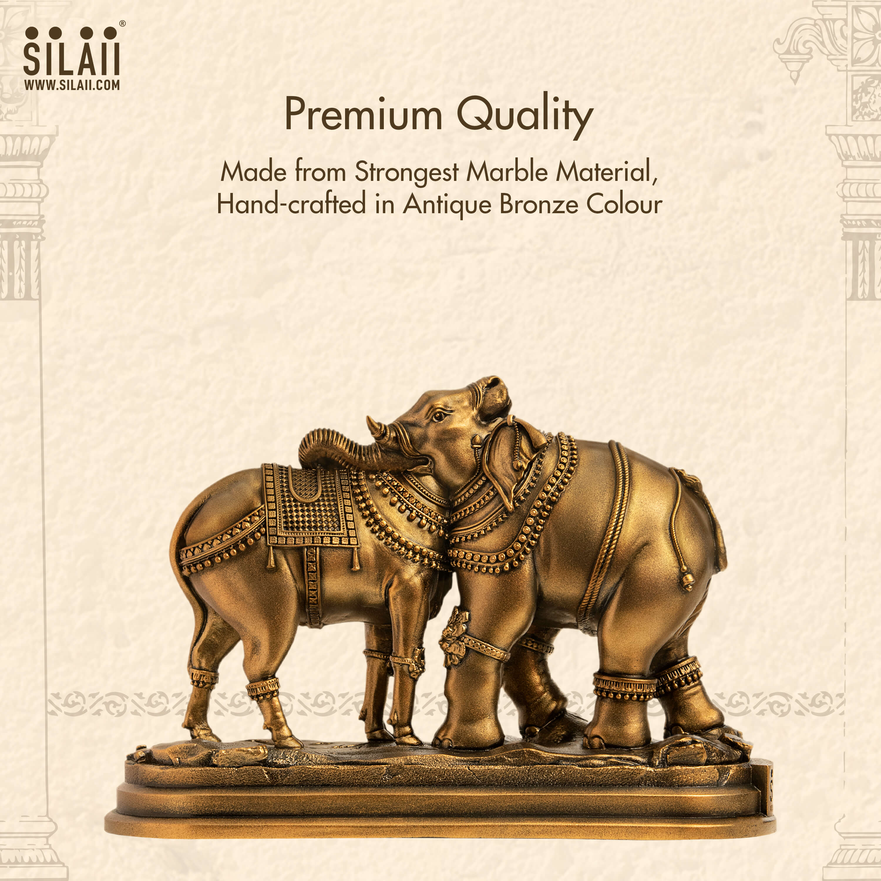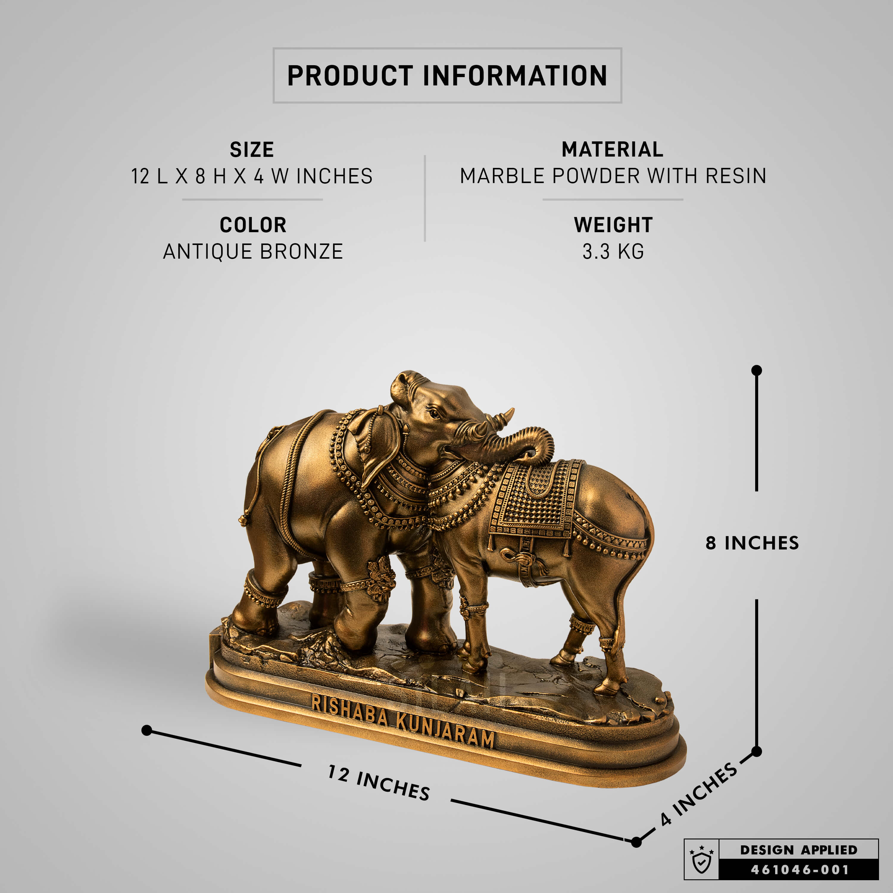 Inspired by the 12th-century Chola temples, the sculpture is an extraordinary play of illusion and insight. Each curve, each line, reveals the mastery of artisans who could merge strength with wisdom, devotion with vision. The bull, symbol of Nandi and unshaken dharma, stands beside the elephant, bearer of wisdom and auspiciousness. Together, they embody harmony - not opposition, but coexistence.
