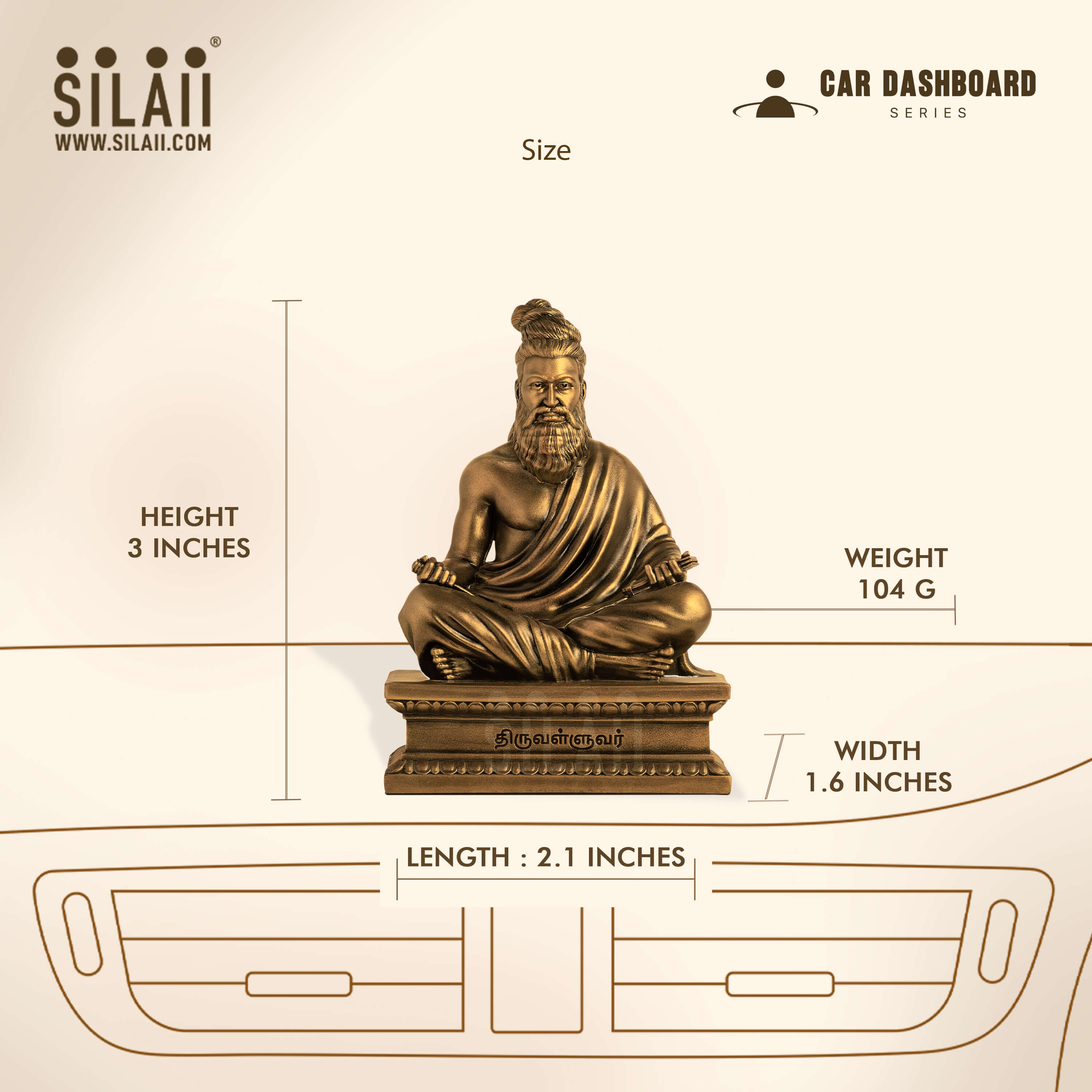 SILAII presents the Thiruvalluvar Car Dashboard Sculpture, a tribute to the timeless voice of virtue. His Thirukkural continues to shape Tamil literature and inspire generations with profound wisdom. Keep the essence of his guidance and clarity with you on every drive.