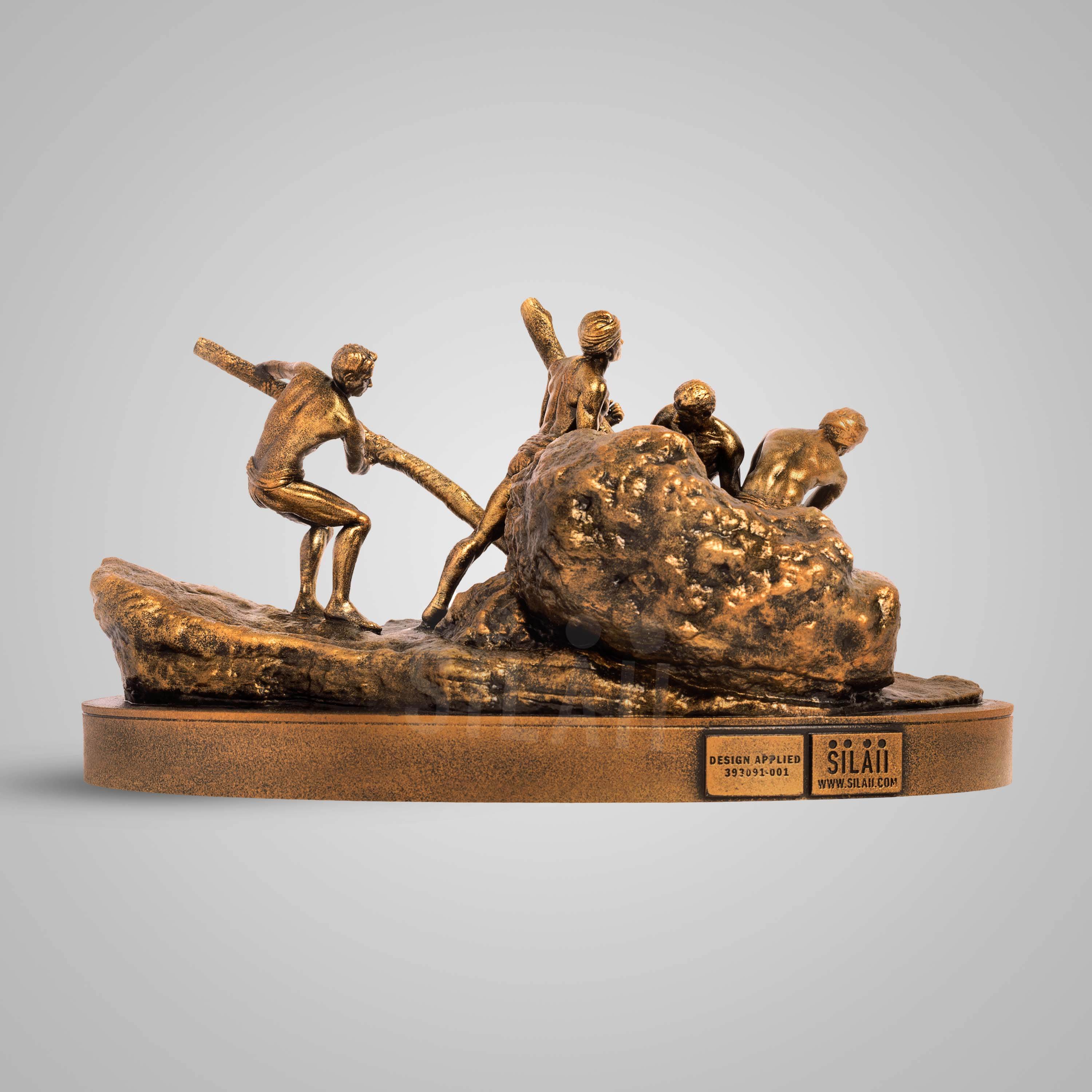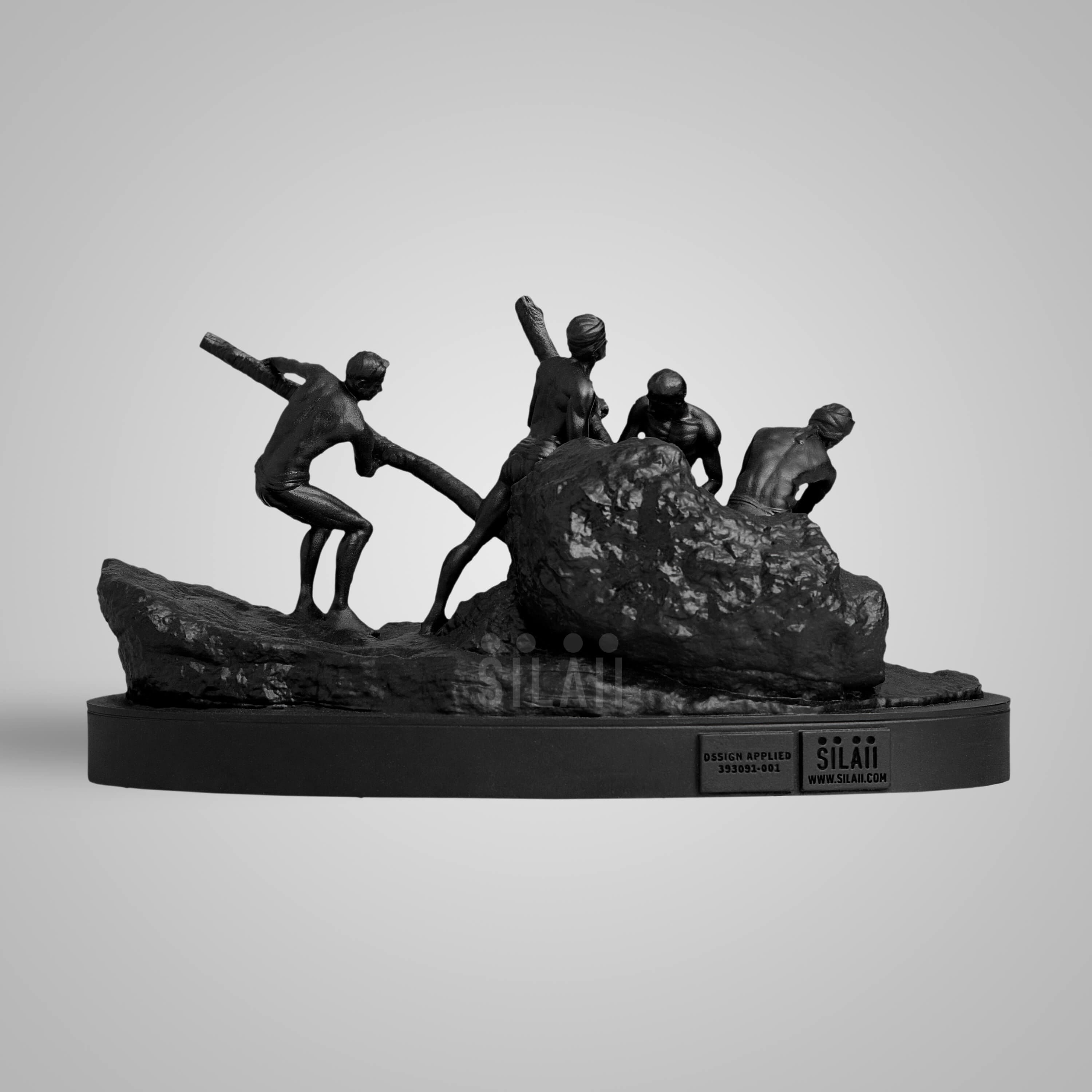 SILAII’s skilled artisans have masterfully recreated the vivid scene of four men powerfully moving a large rock, capturing the true essence of dedication and collective effort that characterises the working community.