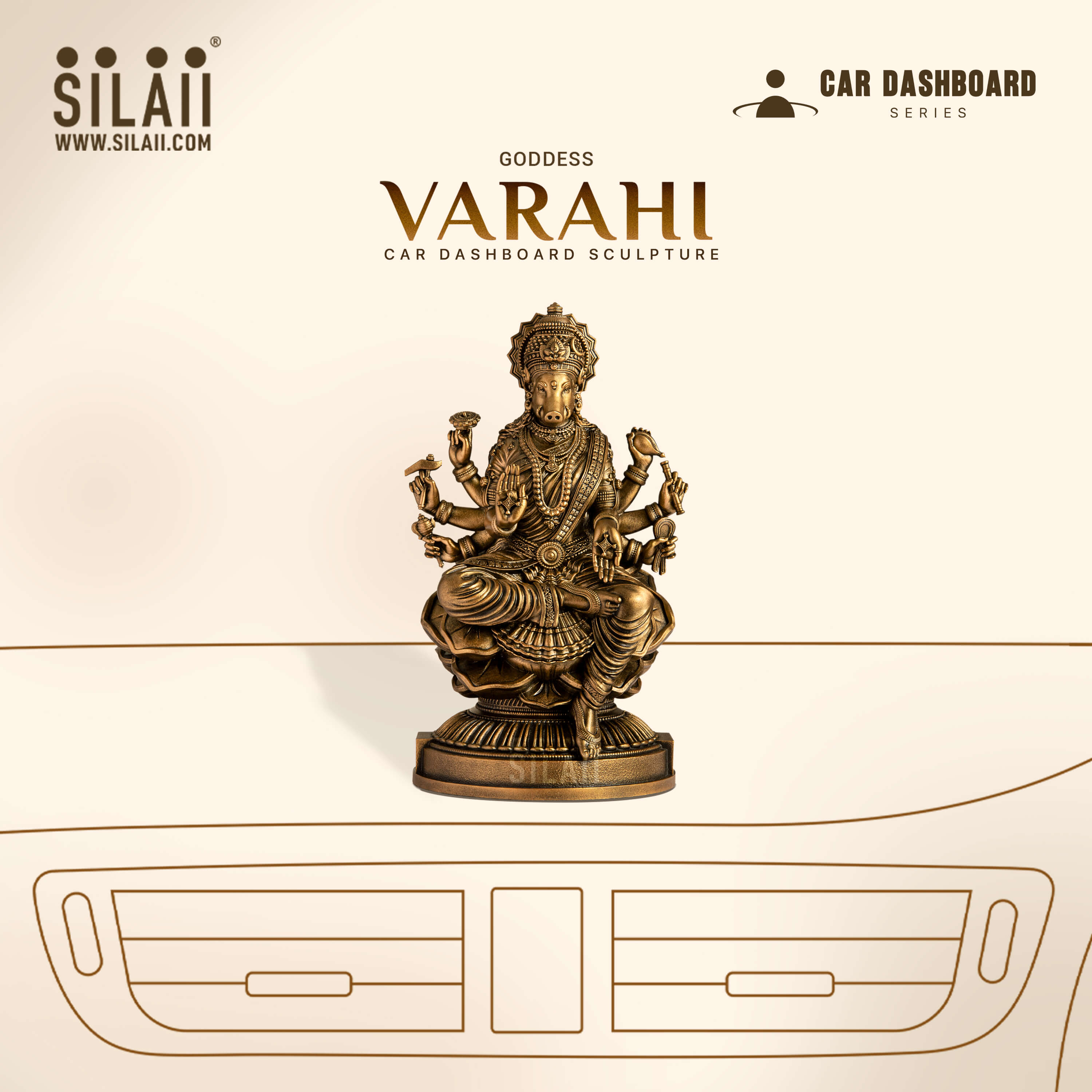 SILAII presents the Goddess Varahi Car Dashboard Sculpture, a tribute to the fierce Shakthi Avatar of Vishnu. She embodies strength, courage, and the power to overcome darkness. Keep her protective presence with you on every drive and carry her divine energy wherever you go.